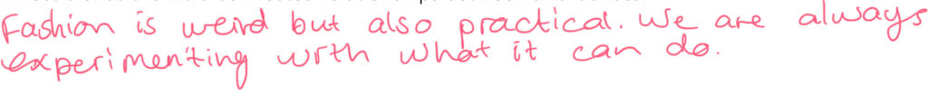 Fashion is weird but also practical. We are always experimenting with what it can do.