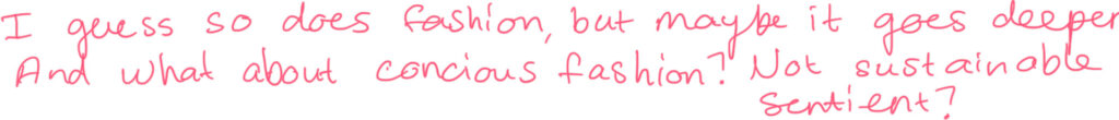 I guess so does fashion, but maybe it goes deeper? And what about conscious fashion? Not sustainable but sentient.