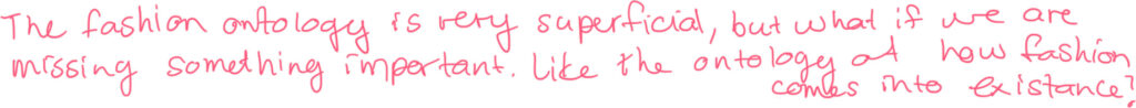 The fashion ontology is very superficial, but what if we are missing something important? Like the ontology of how fashion comes into existence?
