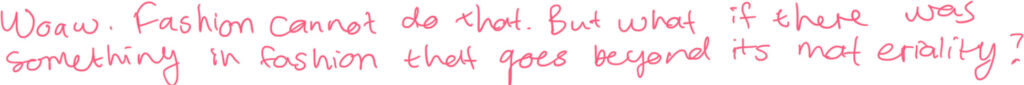 Wow! Fashion cannot do that. But what if there was something in fashion that goes beyond its materiality? Affect in fashion!
