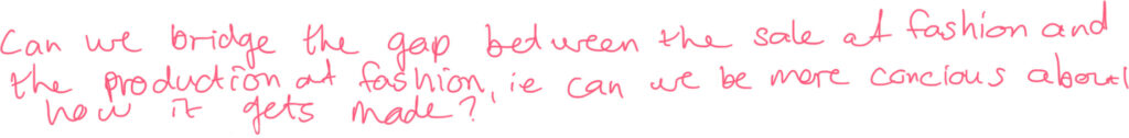 Can we bridge the gap between the sale of fashion and the production of fashion? I.e. can we be more conscious about how it is made?