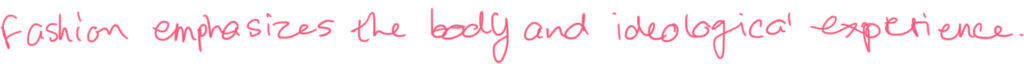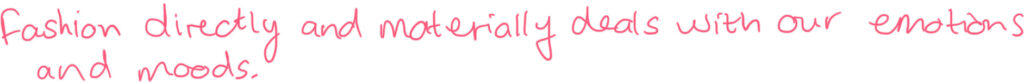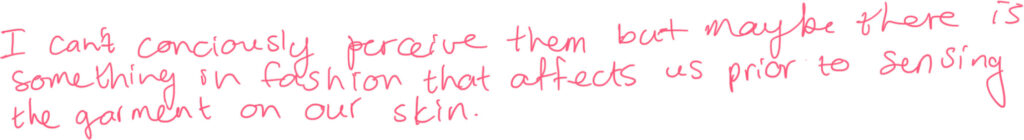 I can’t consciously perceive it, but maybe there is something in fashion that affects us prior to sensing the garment on our skin?