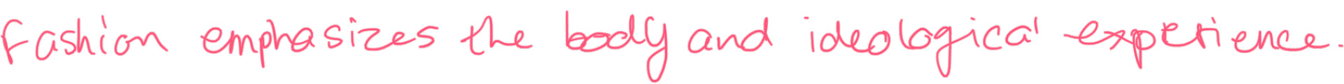 Drawing inspiration from different authors helped me compose a poem on what affect could be. Understanding affect and how it connects us is the key, I feel, to understanding how potential and vitality are transmitted between garments and bodies. After each stanza, I inserted handwritten musings about how, in my opinion, affect relates to the fashion system.
