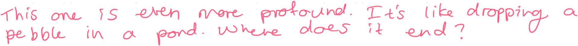 This one is even more profound. It’s like dropping a pebble in a pond. Where does it end?