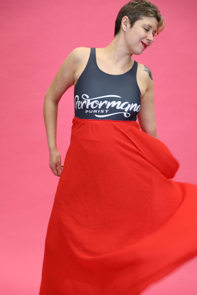 #Artletics is a neologism of art and athletics. It is a creative practice that relies on performative and somatic activities to stimulate affect and expand awareness beyond rational thinking and the traditional senses. Drawing from the rituals associated with dress – like sewing, crafting and repairing, getting dressed or caring for garments – choreographed movements are performed normally in the context of a workshop or exercise class. The aim of practicing #artletics is to stimulate awareness of an agentic world and the intra-relationality that exist between us and our wardrobe. The movements in #artletics are based on the Laban Movement Analysis (LMA). Laban movement components elicit and enhance the basic emotions of anger, fear, sadness and happiness.